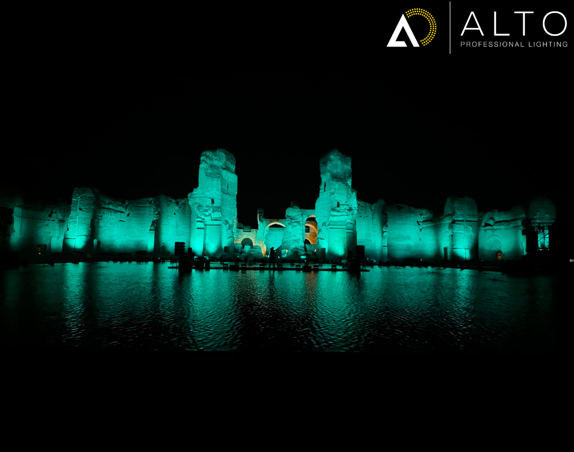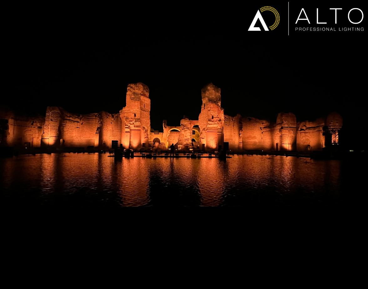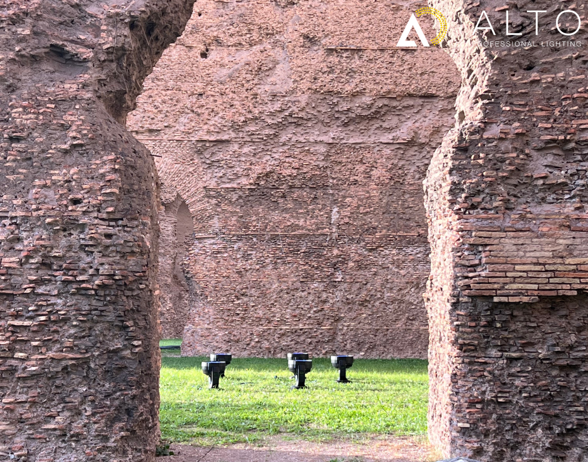 Il risultato è una soluzione ottimizzata, con 90 GLP X5 IP Maxx, capaci di mantenere — e in alcuni punti amplificare — l’impatto visivo immaginato dal designer e di trasformare l’intera area archeologica in un’esperienza luminosa di grande forza evocativa. Questo downgrade numerico non ha compromesso nulla, anzi ha elevato l’intero allestimento, distribuendo le 90 macchine a terra lungo l’intera lunghezza della location per un’illuminazione architetturale uniforme e ipnotica.